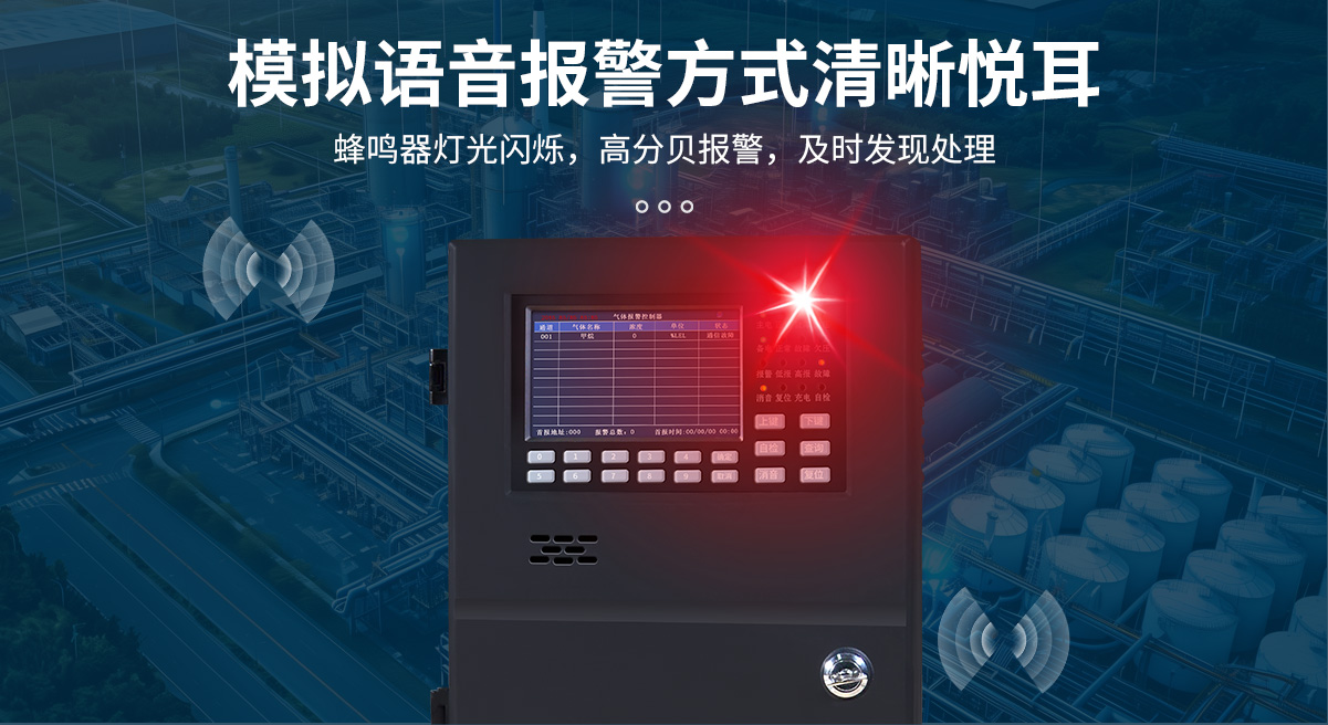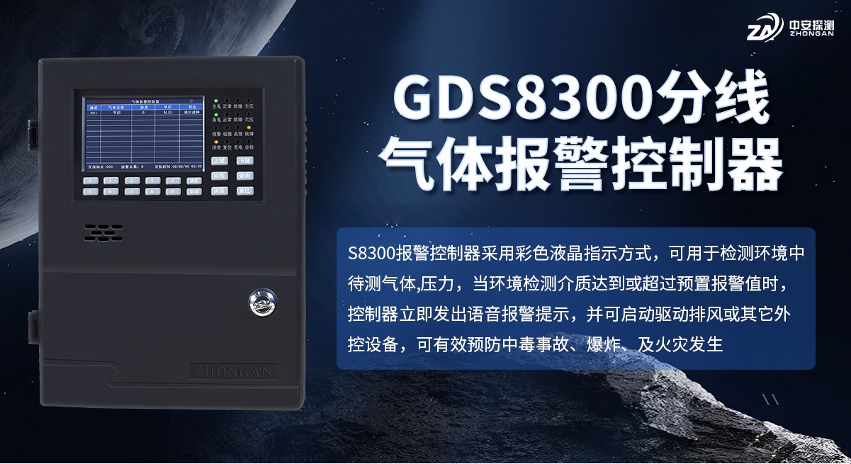 GDS8300分線氣體報警控制器采用彩色液晶指示方式,可用于檢測環境中待測氣體的濃度,當環境中待測氣體的濃度達到或超過預置報警值時,控制器立即發出語音報警提示,并可啟動驅動排風或其它外控設備,可有效預防中毒事故、爆炸、及火災發生,從而保障生命、財產的安全。